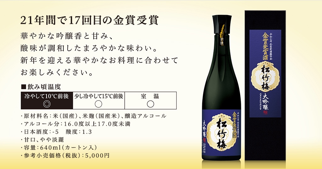 トップ > 清酒(日本酒) > 超特撰松竹梅〈大吟醸〉2025年金賞受賞酒640ML(ギフトボックス入)【送料込】